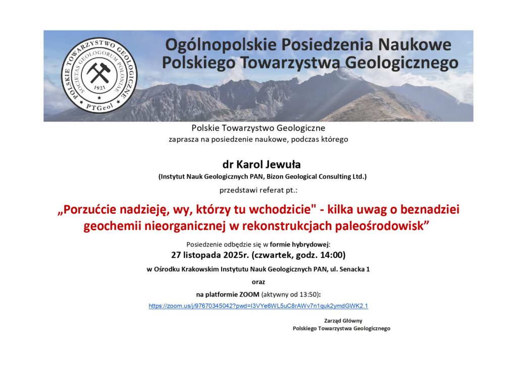 w Ośrodku Krakowskim Instytutu Nauk Geologicznych PAN, ul. Senacka 1