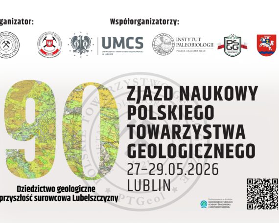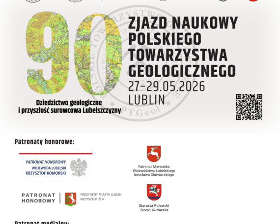 Polskie Towarzystwo GeologiczneOddział Warszawski oraz Państwowy Instytut Geologiczny – Państwowy Instytut BadawczyUniwersytet Marii-Curie Skłodowskiej w LublinieInstytut Paleobiologii Polskiej Akademii NaukPolskie Stowarzyszenie Geologów Górniczych Zapraszają na 90. Zjazd Naukowy Polskiego Towarzystwa Geologicznego Dziedzictwo geologiczne i przyszłość surowcowa Lubelszczyzny w dniach 27–29 maja 2026 r. w Lublinie Organizacja Zjazdu PTGeol na Lubelszczyźnie zbiega się z 55 rocznicą udokumentowania na tym terenie pierwszego złoża węgla kamiennego. Będzie