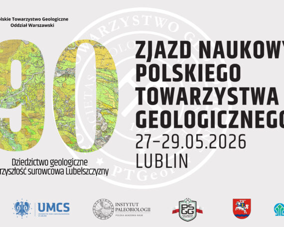 Polskie Towarzystwo GeologiczneOddział Warszawski oraz Państwowy Instytut Geologiczny – Państwowy Instytut BadawczyUniwersytet Marii-Curie Skłodowskiej w LublinieInstytut Paleobiologii Polskiej Akademii NaukPolskie Stowarzyszenie Geologów Górniczych Zapraszają na 90. Zjazd Naukowy Polskiego Towarzystwa Geologicznego Dziedzictwo geologiczne i przyszłość surowcowa Lubelszczyzny w dniach 27–29 maja 2026 r. w Lublinie Organizacja Zjazdu PTGeol na Lubelszczyźnie zbiega się z 55 rocznicą udokumentowania na tym terenie pierwszego złoża węgla kamiennego. Będzie